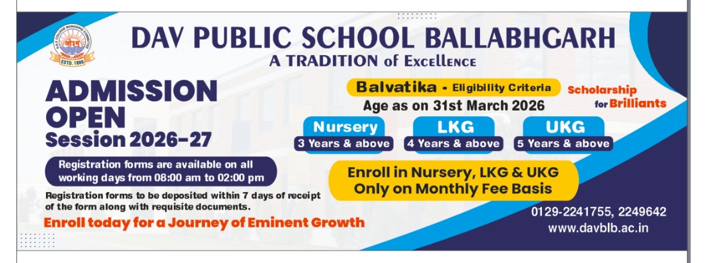 DAV Public School, Ballabhgarh had a noble beginning in the year 1987 in a rented building with hardly 120 students. Today its multi-storied beautiful infra structure facilitating education to more than 2000 students speaks volume of its popularity and